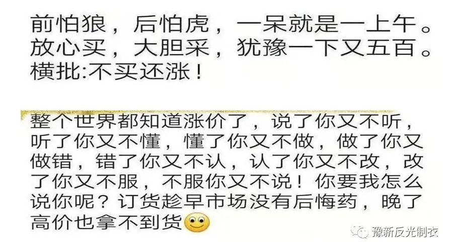 這兩天倉(cāng)庫(kù)里的反光馬甲一直在快速換血,勸大家一句:理智囤貨,清醒看待局勢(shì)發(fā)展!