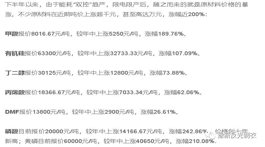 當(dāng)限電遇上原材料漲價(jià),工廠生產(chǎn)成本上升,企業(yè)經(jīng)營(yíng)面臨較大壓力,紛紛調(diào)整產(chǎn)品價(jià)格。無(wú)論是源頭端煤炭的供不應(yīng)求,還是生產(chǎn)線限產(chǎn)、開(kāi)工率持續(xù)低位帶來(lái)的低迷行情,對(duì)于企業(yè)而言都是致命的。成本激增之下,企業(yè)只能選擇漲價(jià)的方式將壓力轉(zhuǎn)嫁至下游,進(jìn)行“自救”。
